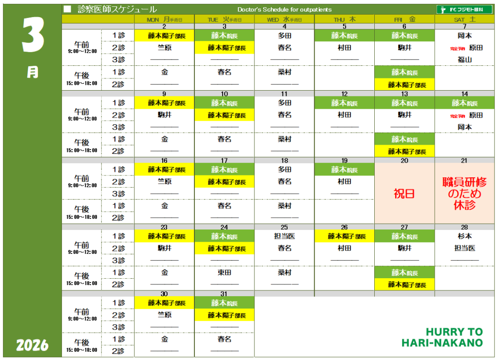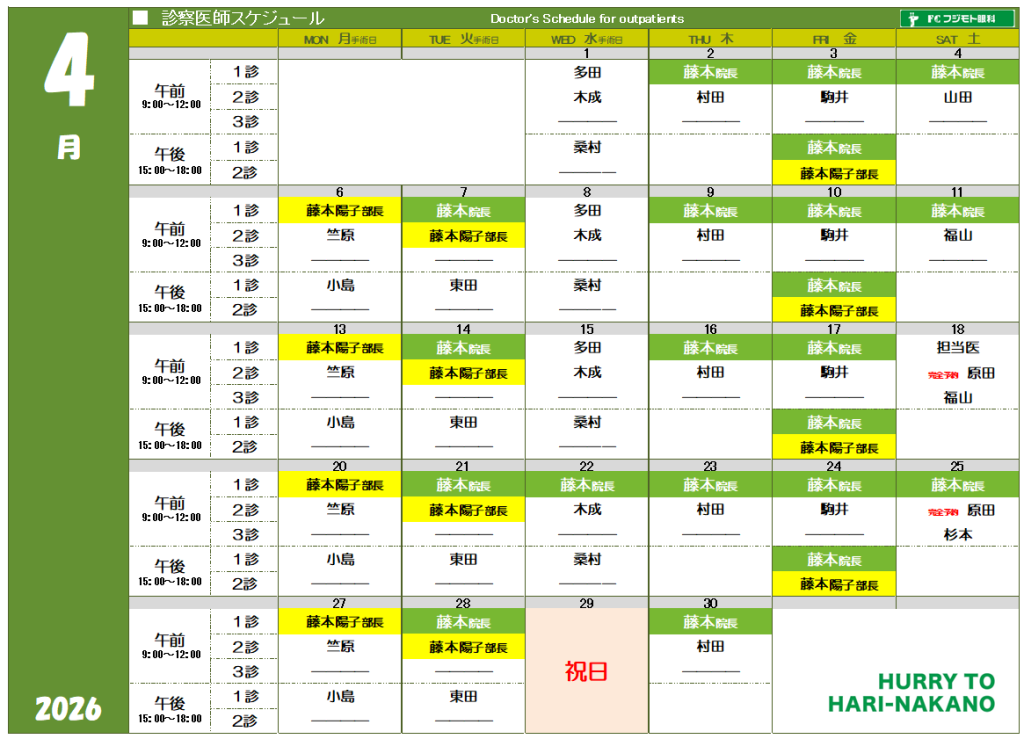 - 【診療時間】9:00〜12:00/15:00〜18:00