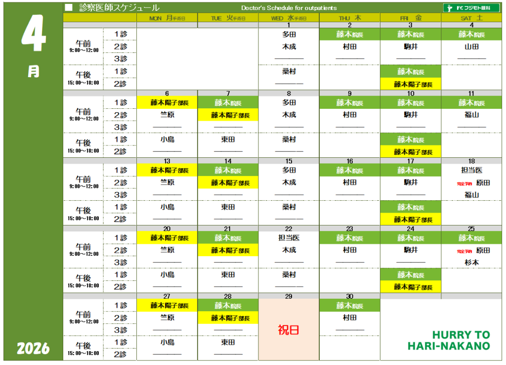 - 【診療時間】9:00〜12:00/15:00〜18:00