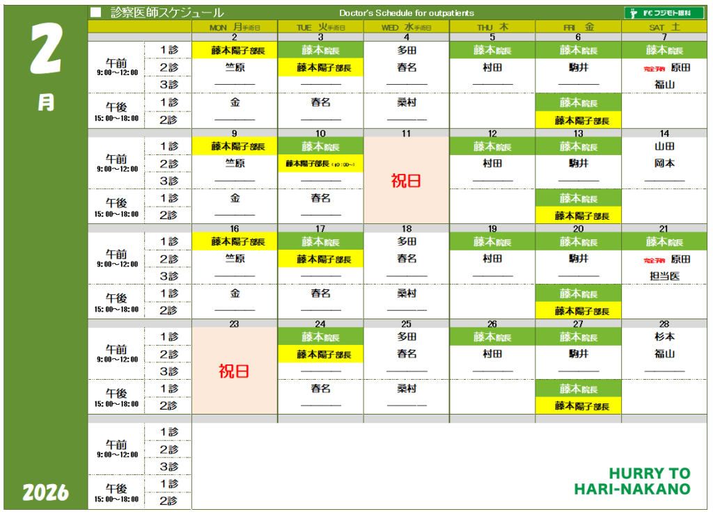 | 診療時間 | 月 | 火 | 水 | 木 | 金 | 土 | 日・祝 |