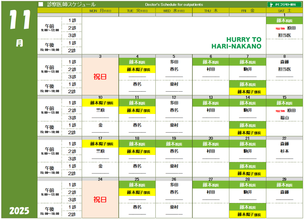 各医師の診察予定は診察医師スケジュールをご確認ください。