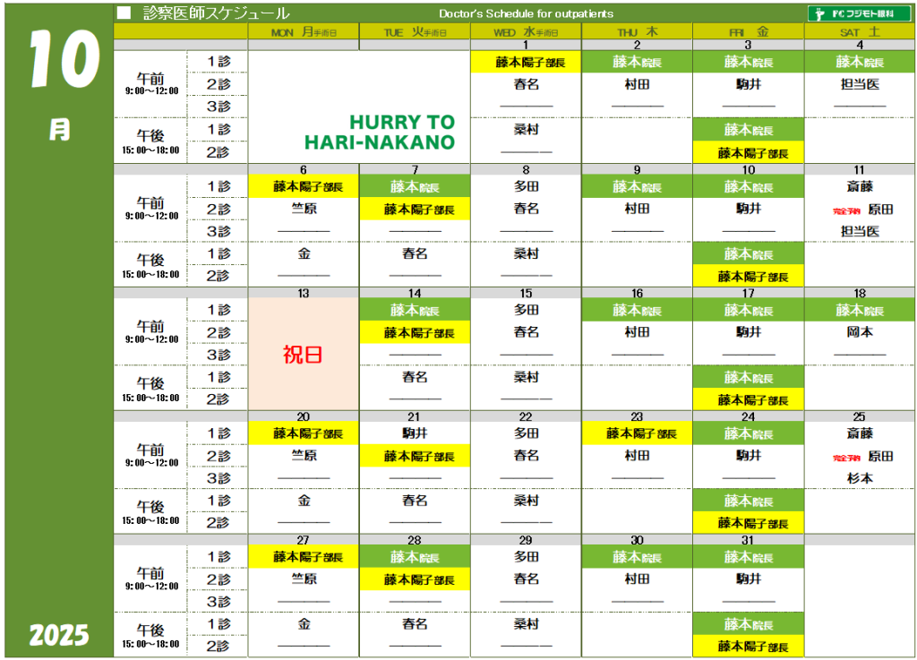 当院には複数の医師が在籍し、患者様一人一人にあった診察を心掛けています。 各医師の診察予定は診察医師スケジュールをご確認ください。